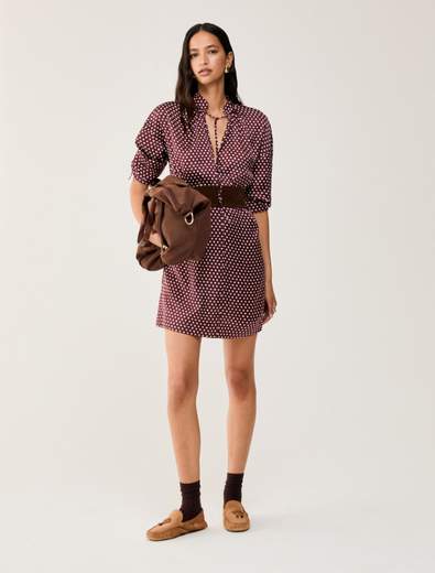 Raso di cotone stretch tinto in pezza, che offre una texture morbida e confortevole. Vestibilità regular fit. Cintura removibile, che consente di adattare il look in base alle preferenze.
