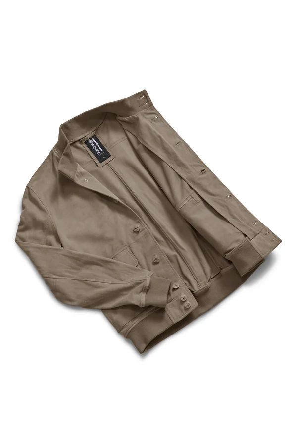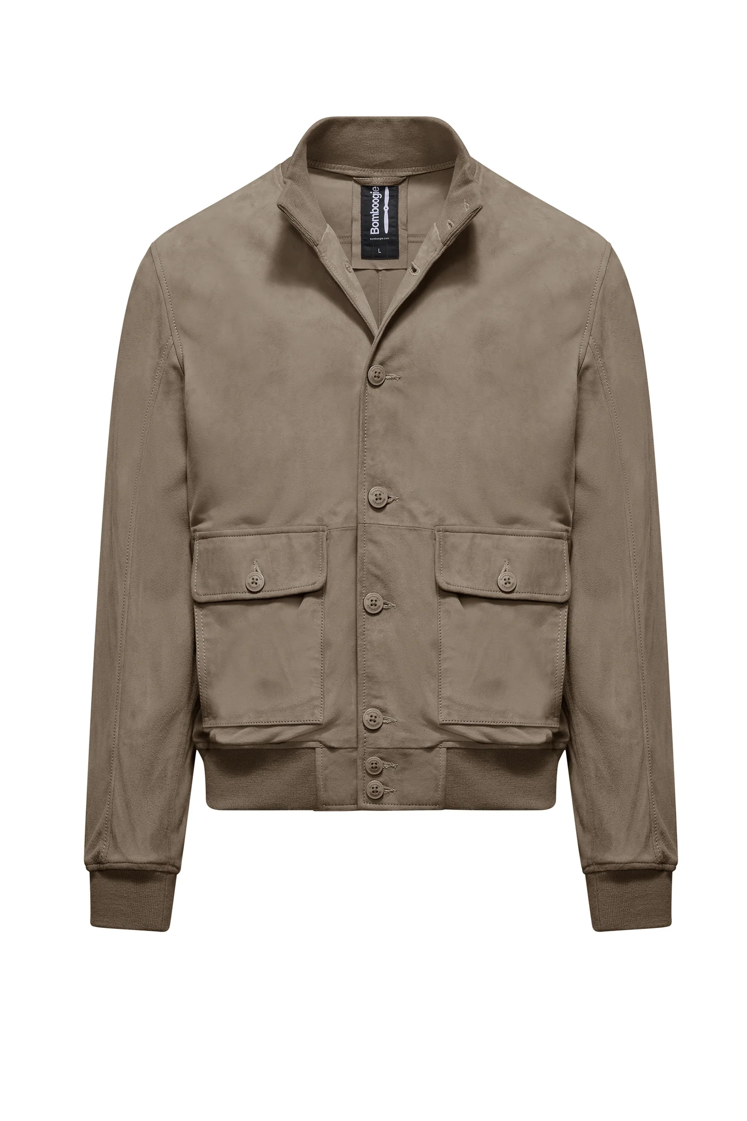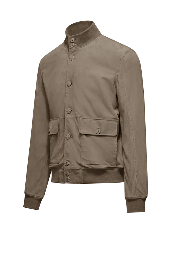 Descrizione: Il bomber in pelle scamosciata Walt è la rivisitazione del modello classico e intramontabile, con il collo alto e i bottoni con asola per chiusura.
