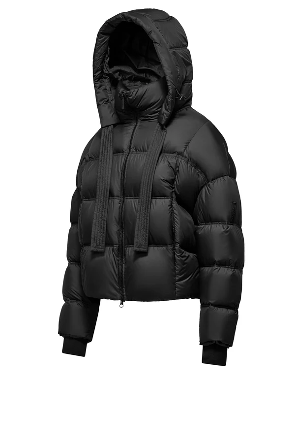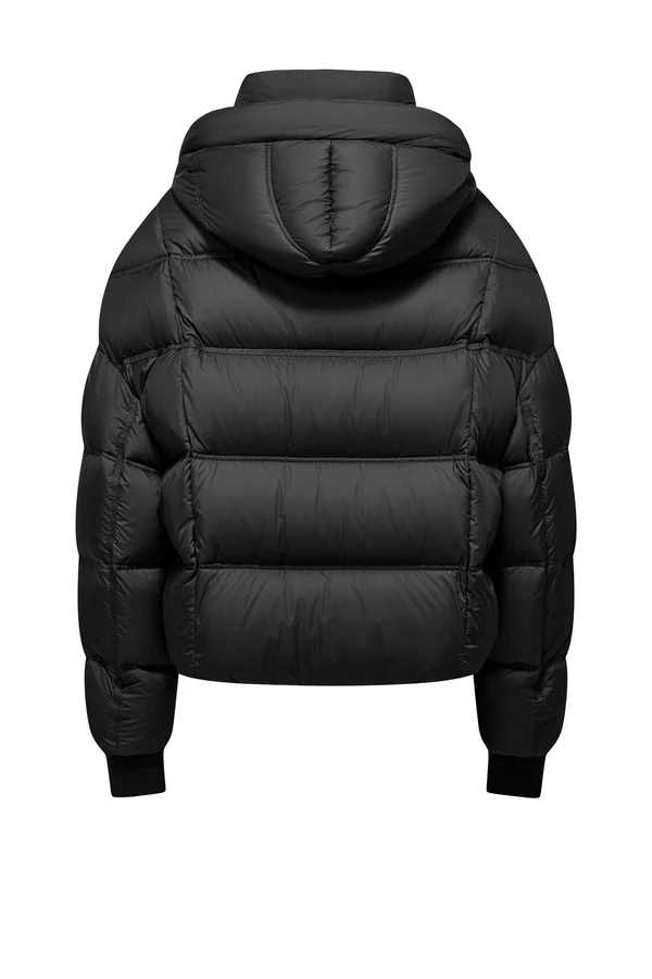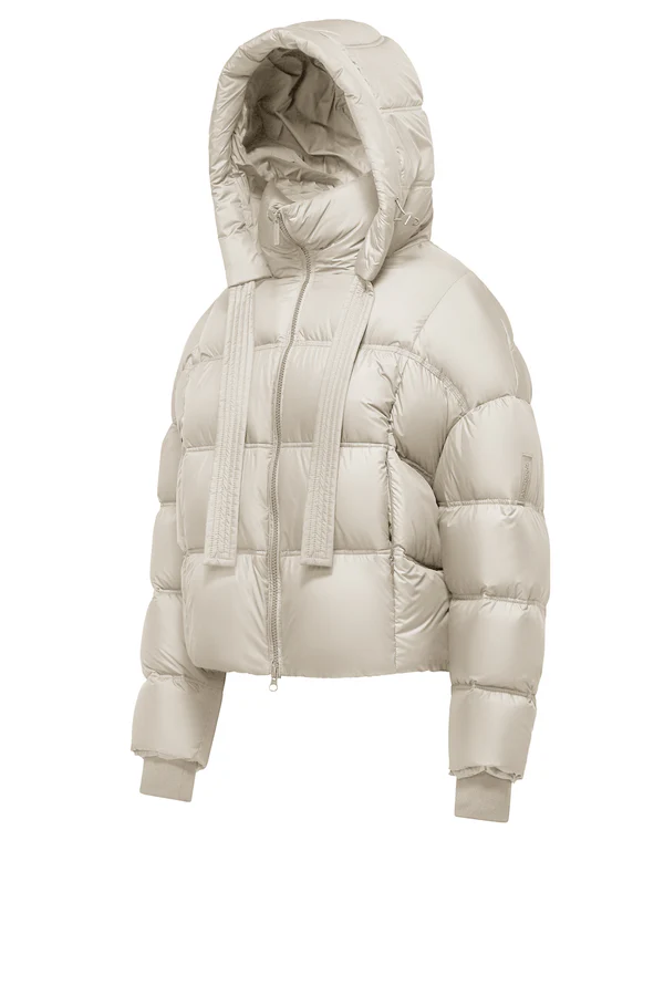 Descrizione: Il piumino corto da donna con cappuccio fisso L’imbottitura in piuma d’oca 90% e piumino 10% Realizzato in poliestere leggero semi-opaco effetto microfibra, questo piumino è sia waterproof che water resistant