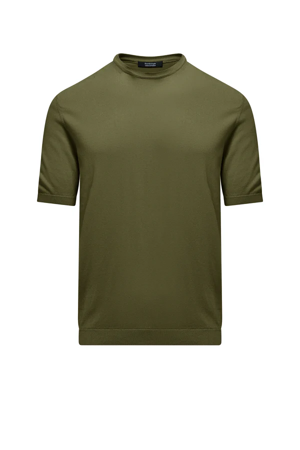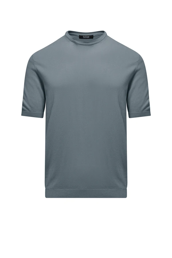 Descrizione: Maglia girocollo in cotone rasato a maniche corte. Vestibilità regular. Rifinita con costina su collo, orli e fondo. Tessuto leggero e traspirante tinto in capo con enzimi. Ideale per la primavera.