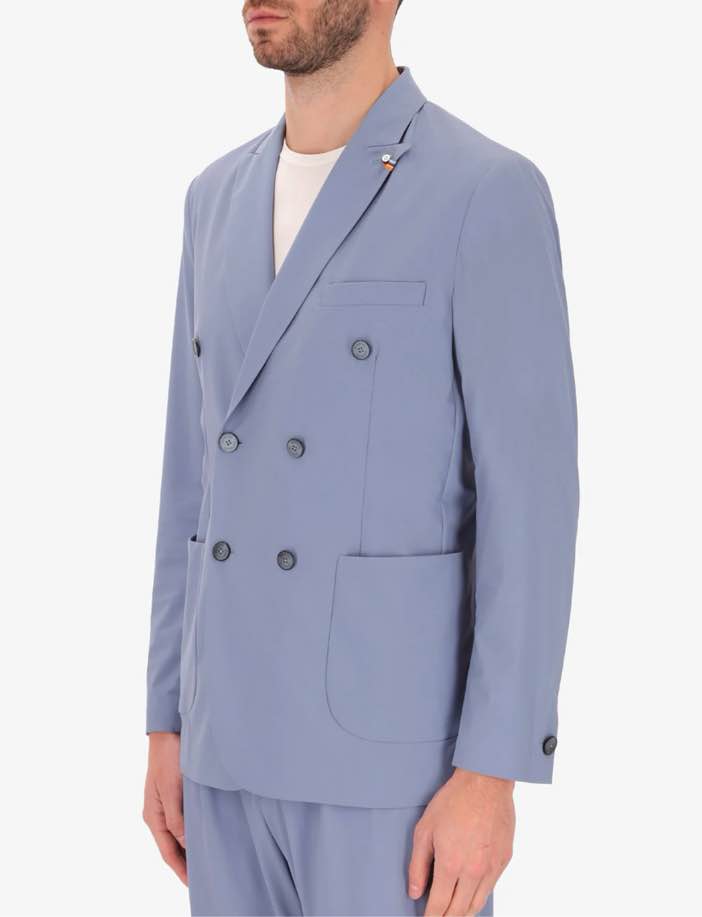 Descrizione: Giacca a doppiopetto in tessuto tecnico active super stretch, traspirante e leggero, garantendo alte performance in termini di elasticità e comfort. Il capo presenta un’abbottonatura a doppio petto con asole e bottoni e tasche frontali a toppa.
