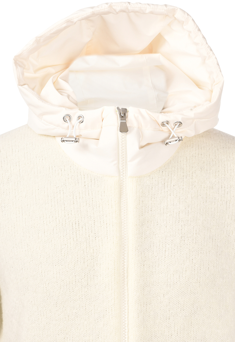 Descrizione: Giubbino in lana 3 fili effetto bouclè con zip doppio cursore e tasche laterali a filetto. Il cappuccio è in nylon con eco-imbottitura. Un capo dall'allure sporty, perfetto per vivere con eleganza anche il tempo libero. Fashion fit.