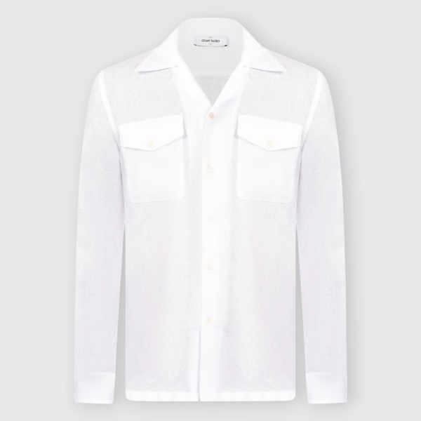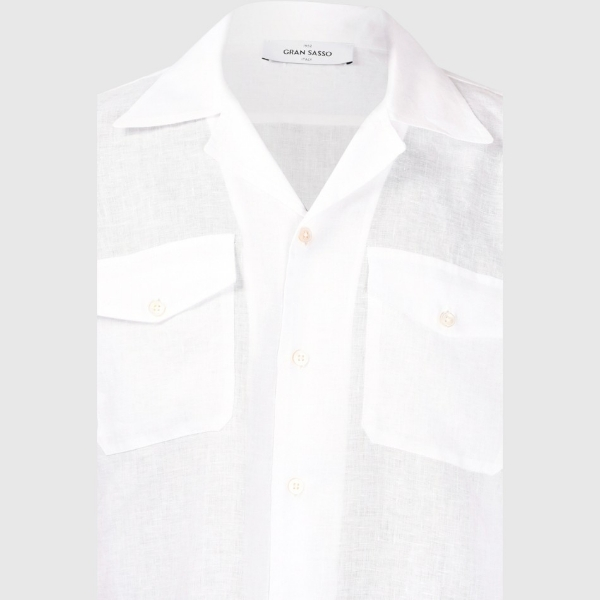 Descrizione: Camicia jersey a maniche lunghe in puro lino con tasche a toppa e collo bowling. Il tessuto 100% naturale è resistente al tempo e ai lavaggi. Il lino, filato traspirante, assorbe l’umidità garantendo un’elevata conducibilità termica e una piacevole sensazione di freschezza. Regular fit. Prodotto in Italia.