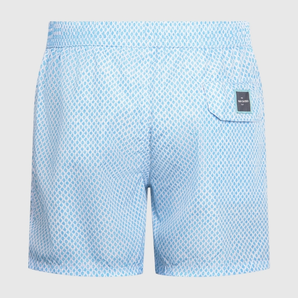 Descrizione: Costume modello boxer, con coulisse in vita con terminale gommato logato e slip interno in microfibra riciclata, realizzata con fibre prodotte attraverso il sistema Eco Circle, che riduce di circa il 50% il consumo di energia e le emissioni di CO₂. La particolarità del capo è la tasca: ripiegando il boxer al suo interno, si trasforma in una pratica pochette, ideale per riporlo facilmente. Un modello pensato per chi non rinuncia a stile e comfort anche al mare. Capo venduto insieme alla pochette. Regular fit. Prodotto in Italia.