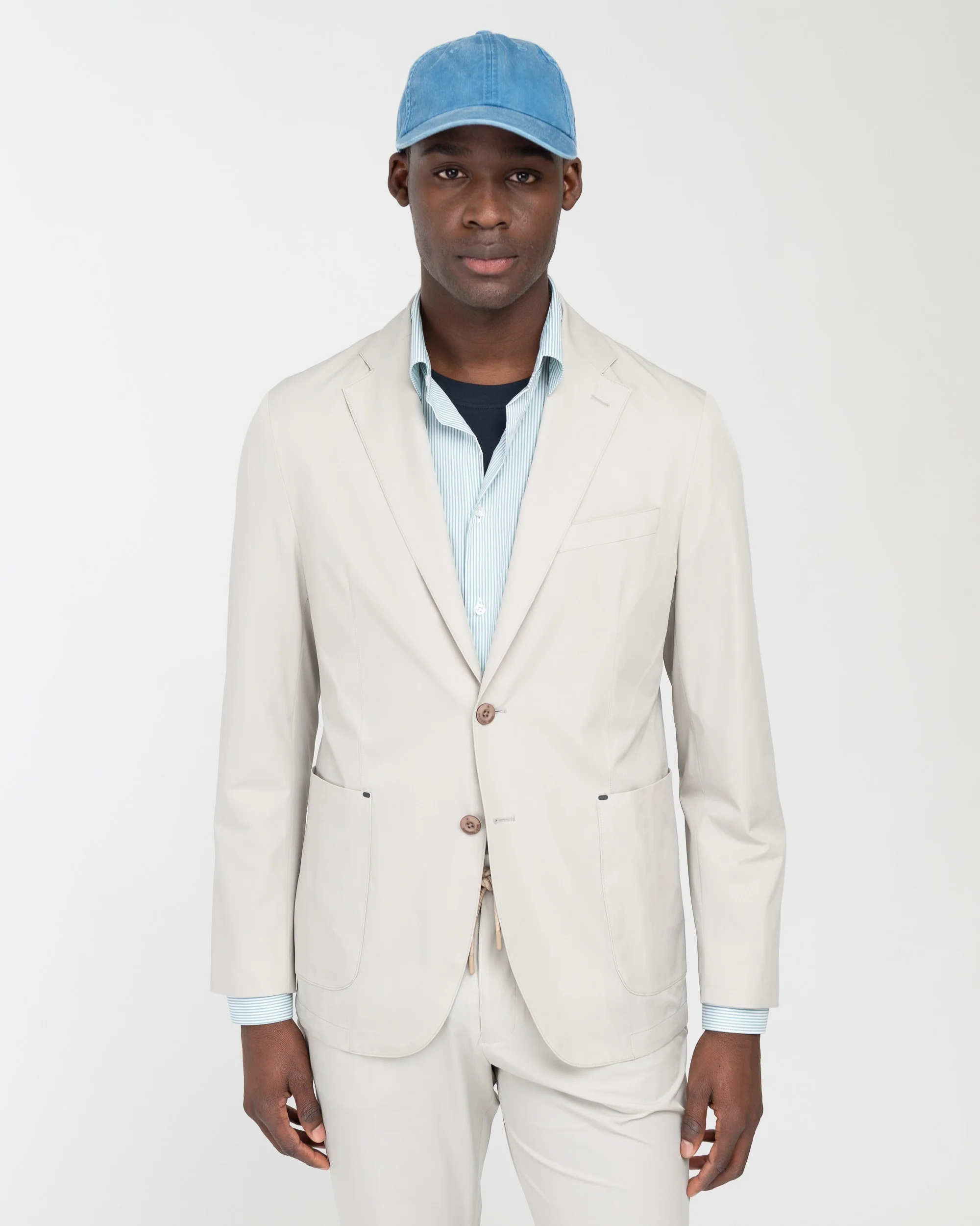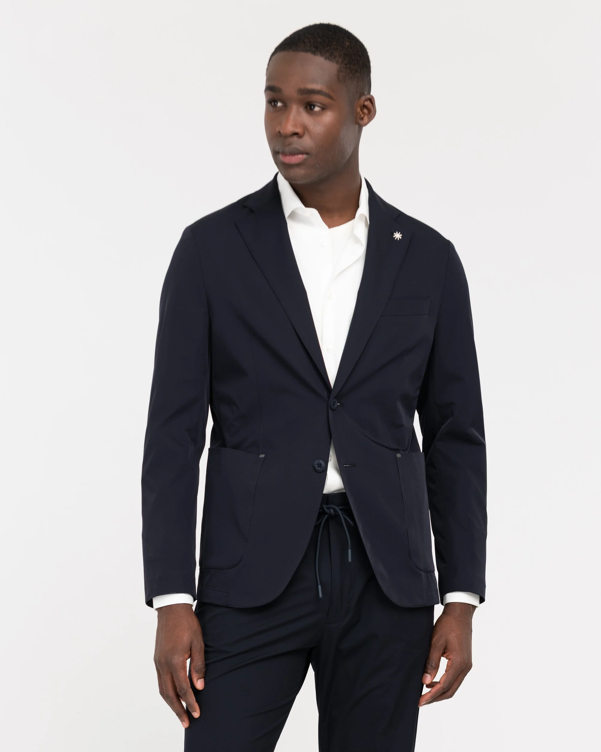 Giacca con tasche a toppe mono petto spacchi di tessuto tech-core