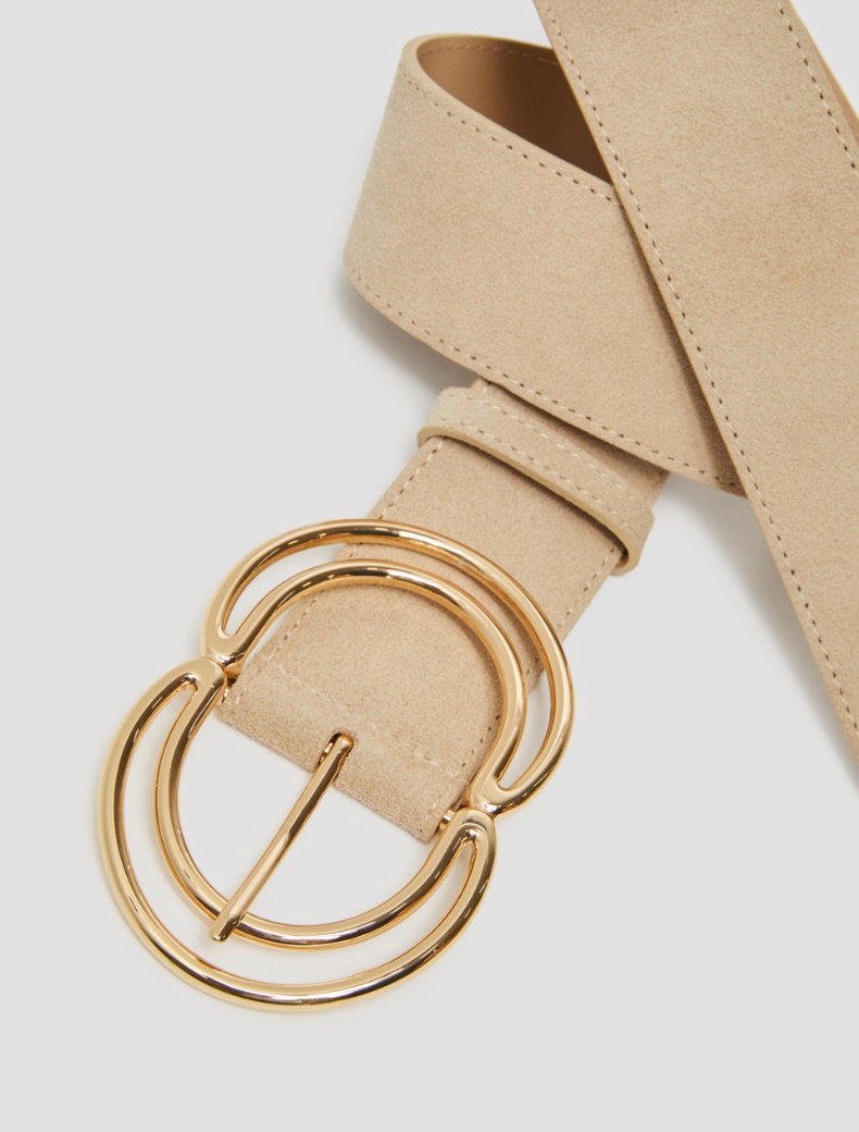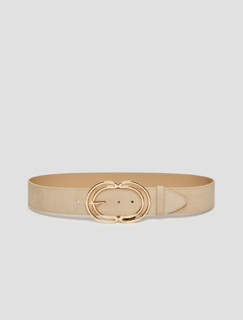 Descrizione: Regolata da una fibbia in metallo dal design speculare, la cintura in pelle scamosciata definisce la silhouette con un tocco chic. Pelle scamosciata Regolazione con fibbia in metallo ALTEZZA 5CM