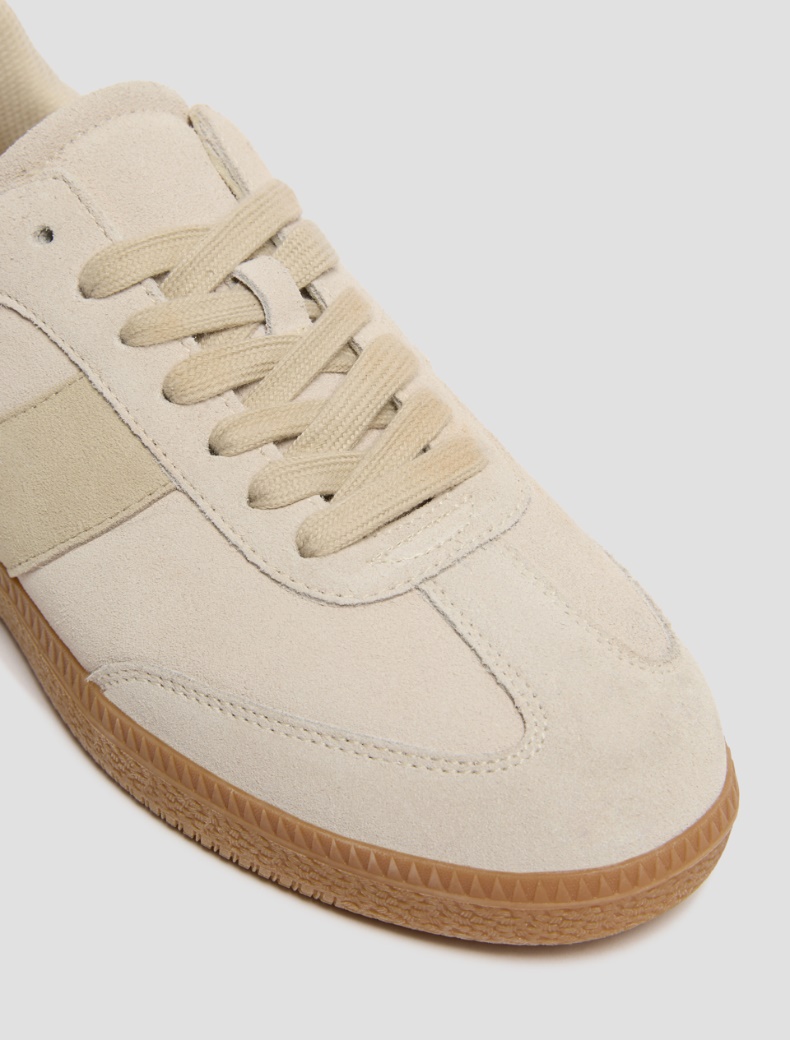 .Design pulito e stile assoluto: queste sneakers in pelle scamosciata saranno perfette con i look informali, ma anche con il completo sartoriale in ufficio.