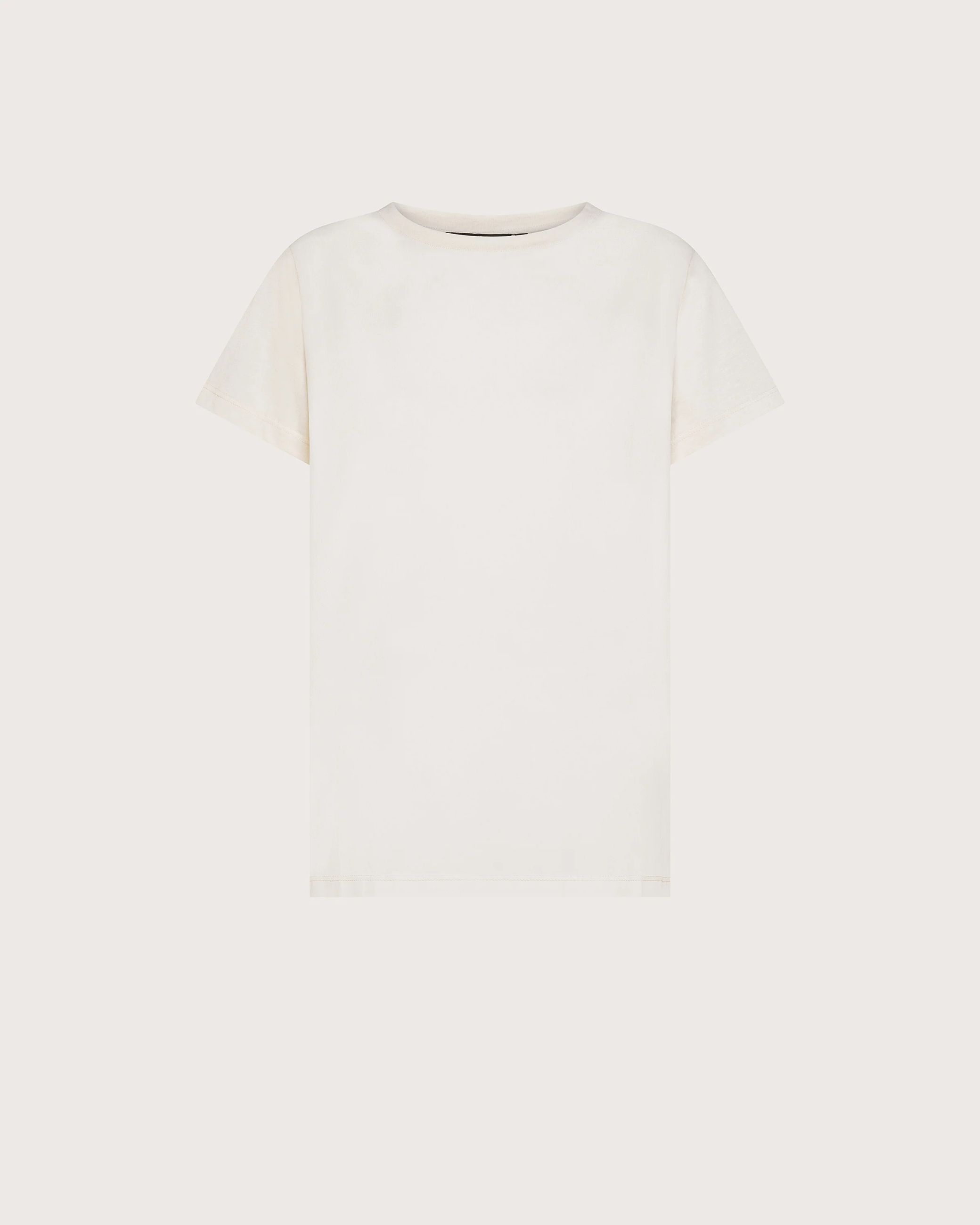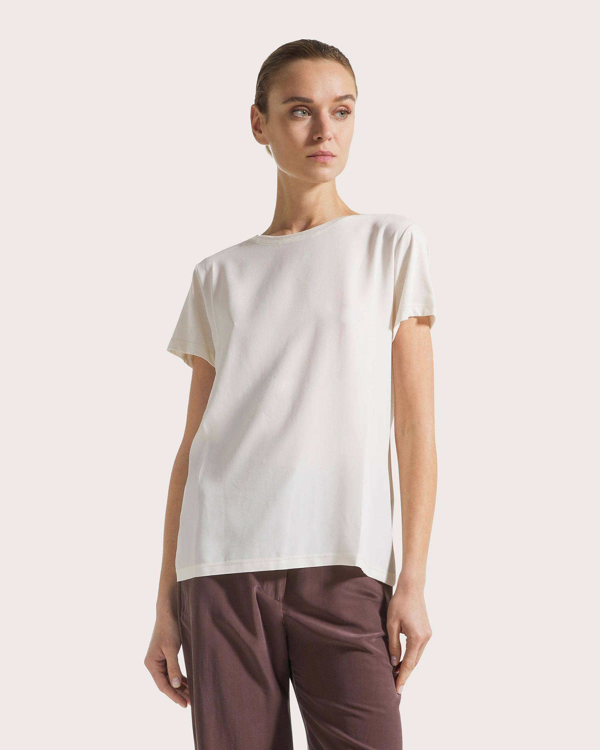 T-shirt girocollo regular fit in tessuto leggero misto seta con maniche corte e schiena di jersey.