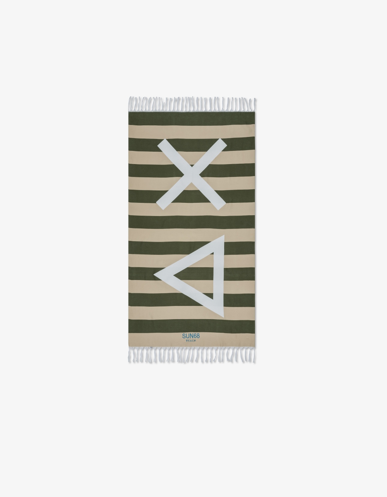 il telo SUN68 è l'aggiunta esclusiva che dà colore ai momenti di relax. Realizzato in spugna di cotone, è rifinito con dettagli grafici dal forte impatto.