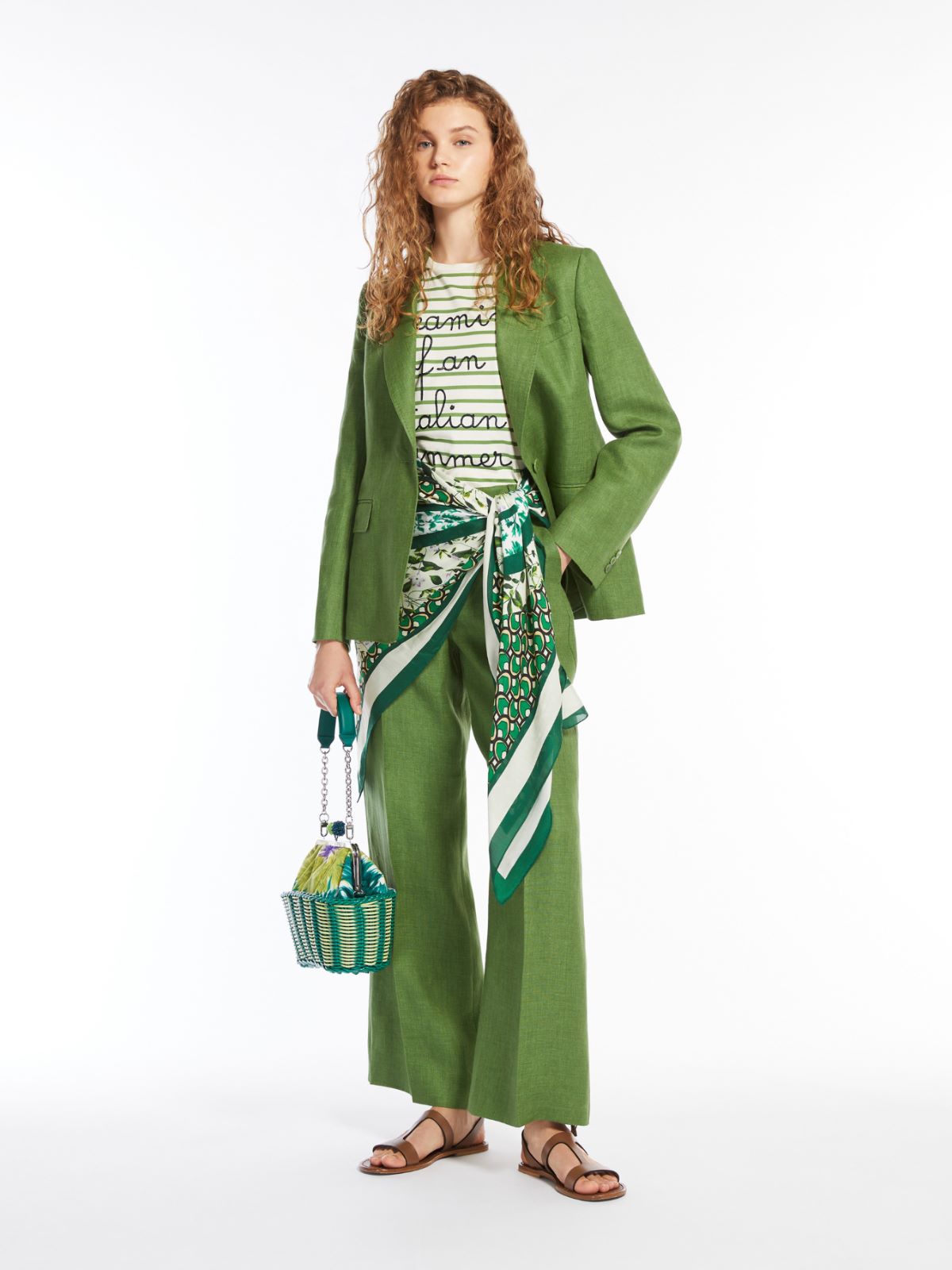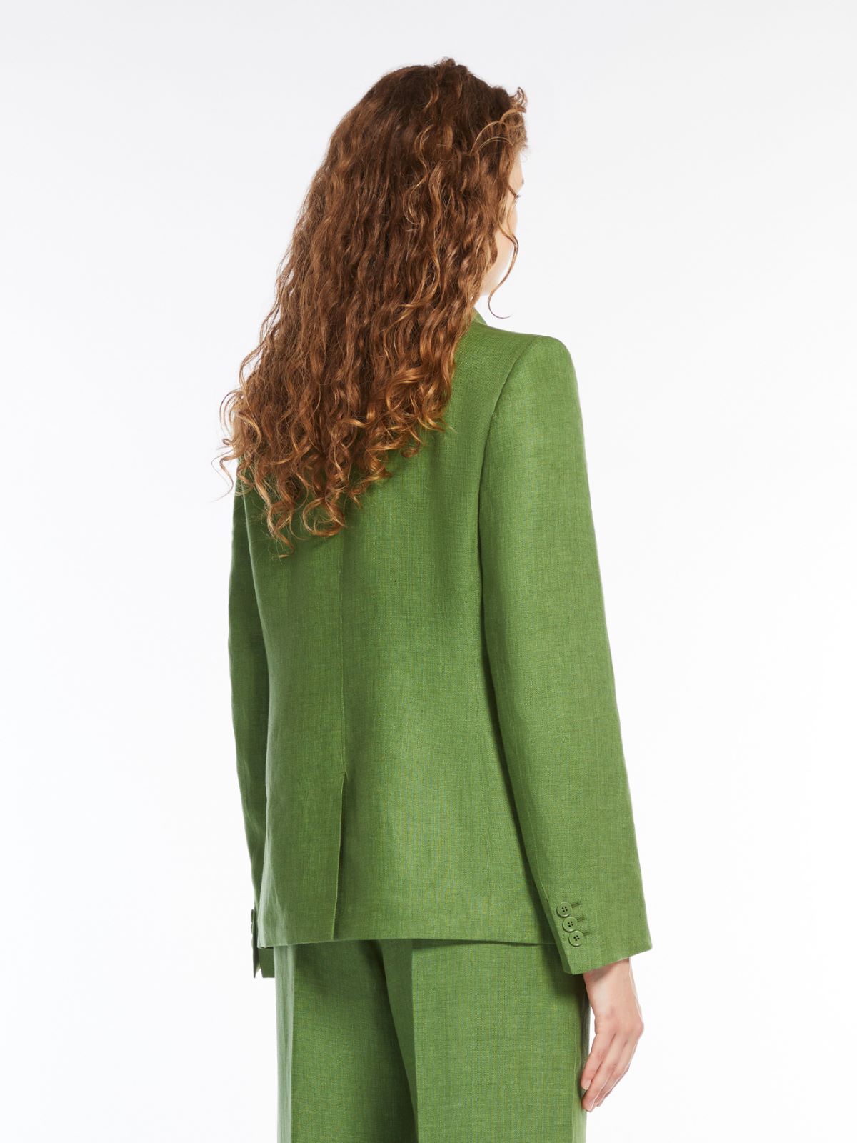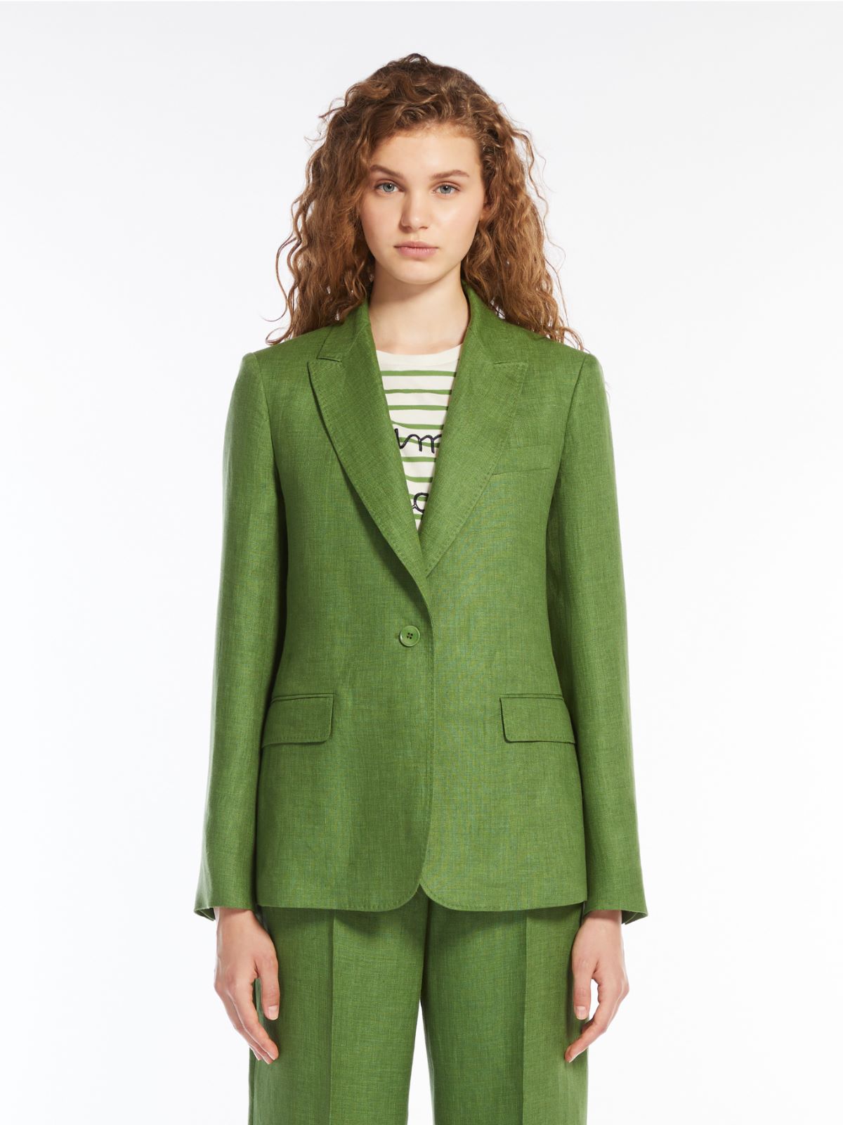 Blazer monopetto realizzato in tessuto di puro lino lavato. Modello semifoderato, caratterizzato da una silhouette leggermente sfiancata con collo a rever, taschino sul petto e tasche a filetto con patta applicata. Rifinito con spacco centrale sul retro e bottoni sui polsi. Chiusura frontale con bottone singolo.