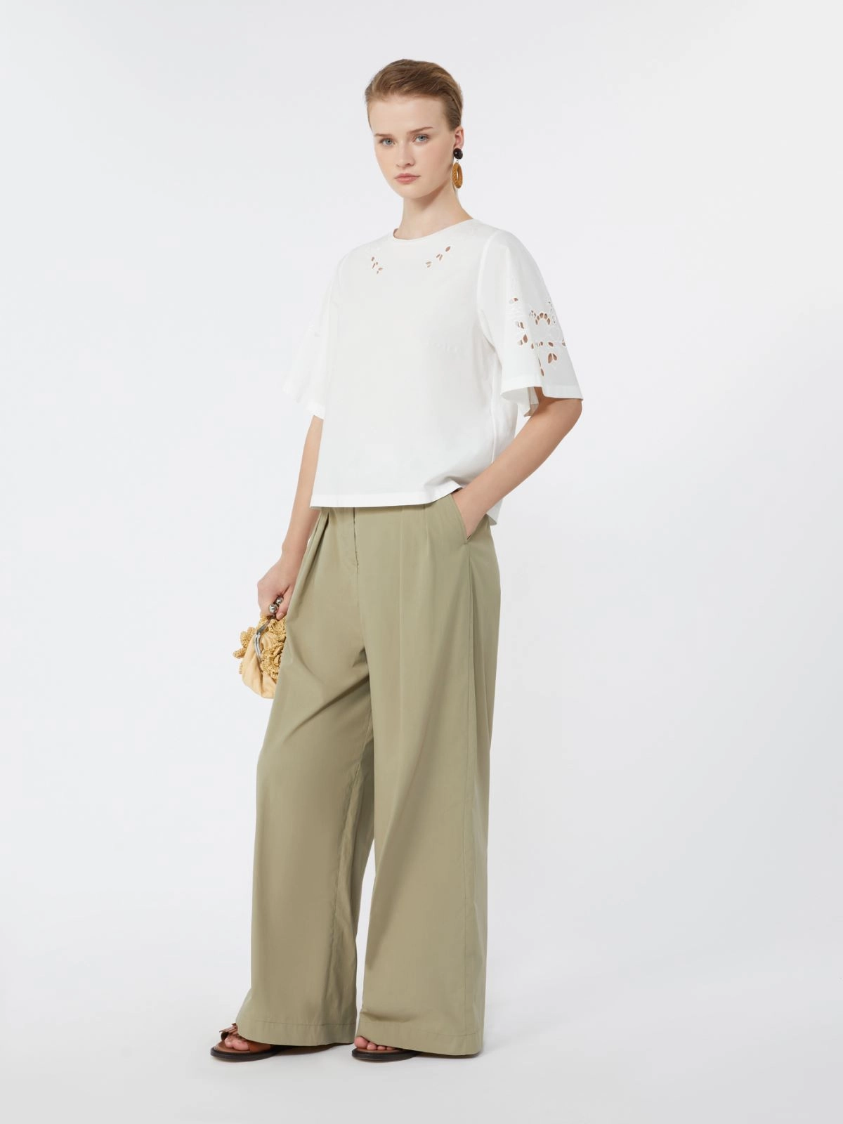 Vestibilità boxy Top in popeline di puro cotone Girocollo Maniche corte a giro Inserto in jersey sulla schiena Piccolo logo a farfalla sul retro del collo